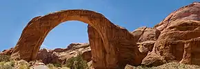 The geology of the area is dominated by the Glen Canyon Group, consisting of the Navajo Sandstone, Kayenta Formation, and Wingate Sandstone.[3] The entire stratigraphic section includes rocks dating from the Cretaceous to Pennsylvanian periods.[4]