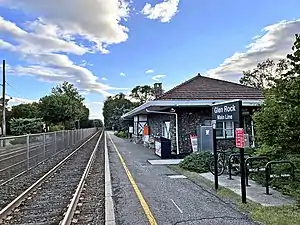 Glen Rock is one of two railroad stations operated by New Jersey Transit in the borough of Glen Rock, Bergen County, New Jersey, United States. Located on the Main Line, the station is signed as Glen RockMain Line to differentiate it from the Glen Rock–Boro Hall station, which lies two blocks east on Rock Road (County Route 134) on the Bergen County Line.