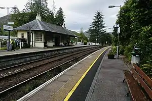 Glenfinnan railway station is a railway station serving the village of Glenfinnan in the Highland council area of Scotland. It is on the West Highland Line, between Lochailort and Locheilside, located 14 miles 58 chains (23.7 km) from the former Banavie Junction. Glenfinnan Viaduct is about 0.7 miles (1 km) to the east of the station.[4] ScotRail, who manage the station, operate all services.