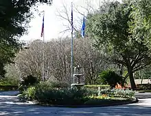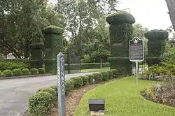 This historic cemetery is the final resting place of a number of individuals who were citizens of the short-lived Republic of Texas. The grave sites of those individuals have been designated with metal markers and are frequently decorated with the flag of the Republic and State of Texas. Charlotte Baldwin Allen, wife of Augustus Chapman Allen, founder City of Houston, has her grave marked by a large monument.[12][13] Charlotte's brother, Horace Baldwin, was a mayor during the Republic;[14] and her daughter, Eliza Allen Converse, was touted as "the first child born in Houston."[15] Another early arrival to Houston was William Robinson Baker, who worked for the Houston Town Company starting in 1837. He was later a Houston mayor.[16] He is buried next to his wife, Hestor Eleanor Runnels.[15] Other citizens of the Texas Republic were Hiram Runnels, a former Governor of Mississippi (1833–1835),[17] and James Wilson Henderson, who served as Governor of Texas in 1853.[18] Anson Jones, the last president of the Republic of Texas, committed suicide at the Capitol Hotel and is buried here.[19] His wife, Mary Smith Jones, the first lady of the Republic of Texas, died on December 31, 1907, and is buried at Glenwood Cemetery.[20]