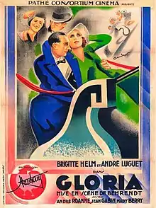 Gloria is a 1931 French-German drama film directed by Hans Behrendt and Yvan Noé and starring Brigitte Helm, André Luguet and Jean Gabin.[1] A co-production between France and Germany, a separate German version Gloria was also made. Such multiple-language versions were common during the early years of sound before dubbing became more widespread.