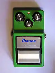 A guitar effect unit mounted in a rocking treadle which, when moved up and down with the foot, applies a frequency filter that mimics some aspects of the human voice. May also be used with keyboards, electric violin, or other instruments. Very popular in the 1970s.