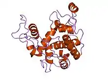 In molecular biology, Glycoside hydrolase family 19 is a family of glycoside hydrolases EC 3.2.1., which are a widespread group of enzymes that hydrolyse the glycosidic bond between two or more carbohydrates, or between a carbohydrate and a non-carbohydrate moiety. A classification system for glycoside hydrolases, based on sequence similarity, has led to the definition of >100 different families.[1][2][3] This classification is available on the CAZy web site,[4][5] and also discussed at CAZypedia, an online encyclopedia of carbohydrate active enzymes.[6][7] y[ _]9