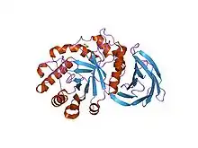 - ↑ Larson SB, Day J, Barba de la Rosa AP, Keen NT, McPherson A (July 2003). "First crystallographic structure of a xylanase from glycoside hydrolase family 5: implications for catalysis". Biochemistry. 42 (28): 8411–22. doi:10.1021/bi034144c. PMID 12859186.
