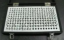 The associated image is a set of pin gauges used to measure holes only a few millimeters in diameter.