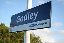 - ↑ "Godley (GDL)". National Rail Enquiries.