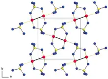 ![]() Structure of gold(II) sulfate(Red spheres: Au; Yellow spheres: S; Blue spheres: O) | |