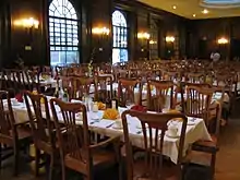 Surprisingly, given the House's current appeal, Adams was not popular initially; the Victorian era rooms of the Gold Coast buildings seemed dark and "Germanic" to 1930's taste, and many students preferred the entirely up-to-date neo-Colonial structures of Eliot, Winthrop and Dunster Houses.[2] Adams' location, however, (it is the closest of all the Houses to Harvard Yard) and its reputation for good food (it is one of the few Harvard Houses that doesn't share a kitchen) soon overcame any perceived architectural deficiencies. In fact, some of these same “deficiencies” turned out to be quite handy: students in the 1940s and 1950s wishing to avoid the College's strict nightly curfews and parietal rules came to greatly value Adams' multiple and unguarded entries, unlike the central, monitored portals of the newer undergraduate residences. Today, of course, such stringent measures are long gone, and the various buildings that comprise Adams House are considered some of the most interesting and architecturally significant structures in the University system.