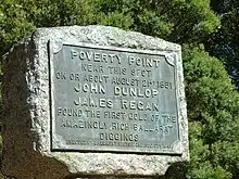 The area was once known as Poverty Point. However, on 21 August 1851 prospectors John Dunlop and James Regan struck a few ounces of gold when passing through the area; the announcement of this discovery is attributed to sparking the Ballarat Gold Rush, hence the poetic name change. A historical marker for the location of the discovery is located in a reserve just off Clayton Street.