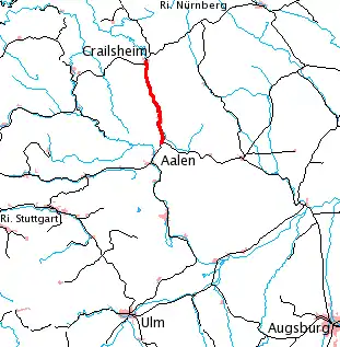 - ↑ Dobeschinsky, Tritschler, von Molo (July 2009). Verbesserung der Schienenverkehre in Ostwürttemberg (PDF) (in German). Vol. Teil B – Aufarbeitung Schienenstrecken. Verkehrswissenschaftliches Institut Stuttgart. Archived from the original (PDF) on 2011-08-23. Retrieved 2011-04-20.