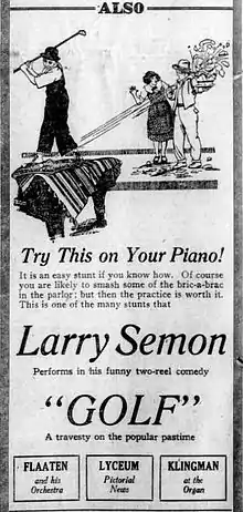 Golf is a 1922 American silent comedy film starring Larry Semon and featuring Oliver Hardy.[1] The film has been released on DVD.[1]
