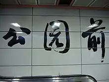 Gongyuanqian Station (simplified Chinese: 公园前站; traditional Chinese: 公園前站; Cantonese Yale: Gūng'yùhnchìhn Jaahm; lit. 'Front of the Park Station') is an interchange station of Line 1 and Line 2 of the Guangzhou Metro. It started operation on 28 June 1999 and is located under People's Park in Yuexiu District of Guangzhou.[1]