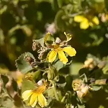 Goodenia grandiflora, commonly known as large-flowered goodenia,[2] pinnate goodenia or mountain primrose,[3] is a species of flowering plant in the family Goodeniaceae and is endemic to Australia. It is an erect under-shrub with toothed, egg-shaped to round leaves and racemes or thyrses of yellow, white or purplish flowers.