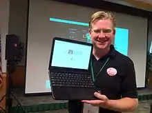 On May 11, 2011, Google announced two Chromebooks from Acer and Samsung at Google I/O.[27][28] The Samsung model was released on June 15, 2011, and the Acer model in mid-July.[29][30] In August 2011, Netflix announced official support for ChromeOS through its streaming service, allowing Chromebooks to watch streaming movies and TV shows via Netflix. At the time, other devices had to use Microsoft Silverlight to play videos from Netflix.[31] Later in that same month, Citrix released a client application for ChromeOS, allowing Chromebooks to access Windows applications and desktops remotely.[32] Dublin City University became the first educational institution in Europe to provide Chromebooks for its students when it announced an agreement with Google in September 2011.[33]