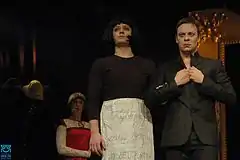 He further rose to continental prominence as homosexual activist Mirko Dedijer, in the 2011 Festroia Award-winning film The Parade.[7] The film by Srđan Dragojević reached commercial success, despite the controversial subject, and critics praised Jevtić's portrayal.[8] Other than his role in The Parade, he actively appeared in the We're Not Angels films as fictional Leskovac native Andreja and played the supporting role of Mitar in the 2011 American war film In the Land of Blood and Honey directed by Angelina Jolie. He won the Apolon Prize in Belgrade for his role as Miloš in Life Is a Miracle entered into the 2004 Cannes Film Festival.[9] He starred as Dane in the Srđan Dragojević production Sveti Georgije ubija aždahu in 2008, and in Na lijepom plavom Dunavu in 2009 as Jacek.[10]