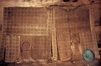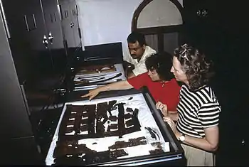 A wood species analysis was begun in 1983 by Professor Burhan Aytuğ of Istanbul University, and is now under the direction of Professor Robert Blanchette, Department of Wood Pathology, University of Minnesota.[27] Robert Blanchette is also supervising a wood pathology analysis, which aims to understand the types of degradation present in the wood and the causes of the decay.[28] The graffiti on the serving stands from Tumulus MM have been studied by Professor Lynn Roller, University of California, Davis.[29] The textiles associated with the furniture from Tumulus MM are the subject of a collaborative research project carried out at the Museum Conservation Institute, Smithsonian Institution, headed by Mary Ballard.[30] The menu of the funerary feast that took place before the Tumulus MM burial was determined by Dr. Patrick McGovern and his colleagues, and the mixed fermented beverage was created through the efforts of Pat McGovern and Sam Calagione of Dogfish Head Brewery.[31]
