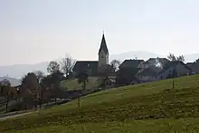 The local church, dedicated to Saint Cunigunde, is the parish church of the Parish of Saint Cunigunde on Pohorje (Archdiocese of Maribor). It dates to the late 14th century with extensive rebuilding in the 17th century.[7]