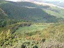 Gorse covering hillside previously cleared of native forest for farming, Wellington, NZ
