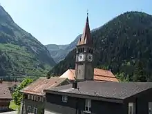 Göschenen locally [ɡɔʊʃɛnɛn] ⓘ (German, Italian: Casinotta, Romansh: Caschanuttais) is a village and municipality in the canton of Uri in Switzerland. It sits at the northern end of the Gotthard tunnel. The Göschenen riots (1875) saw Urner troops opening fire on Italian miners demonstrating for better working conditions and wages on the tunnel's construction site.[3]