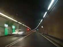 - ↑ After Norway's Lærdal Tunnel 24.5 km (15.2 mi), Japan's Yamate Tunnel, and China's Zhongnanshan Tunnel 18 km (11 mi).