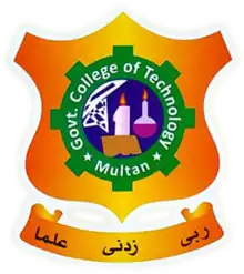 Government College of Technology (or GCT), Multan, Punjab, Pakistan was formerly known as Government Polytechnic Institute. The institute was established in 1965 and upgraded to Government College of Technology in 1981–1982. GCT is covered 60 acres (240,000 m2) area. It is located in Qasim Pur Colony, Bahawalpur road, Multan. Due to the road broadness, its main gate has been shifted to backside and the name of college written for years on it now has been disappeared.