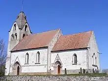 The church is large in comparison with other country churches on Gotland, and built of local sandstone.[3] The nave is divided in three sections by sturdy columns. The choir lacks an apse and instead ends with three slender Gothic windows, a design typical for medieval churches on Gotland. The tower is Romanesque but the spire dates from the 18th century.[1]