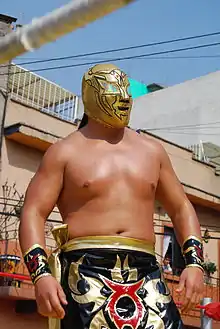 In early 2009, professional wrestler Último Guerrero introduced "Último Guerrero Jr." to the public. He revealed that he was training for a professional wrestling career. At the time he was introduced as the son of Último Guerrero.[4] It is not uncommon for masked wrestlers being presented as relatives to well-known wrestlers who are not blood relations, but merely paid for the rights to use the mask and name.[5] In Último Guerrero Jr.'s case it was later confirmed that there was a blood relationship between the two, just not father and son.[2][6]