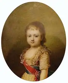 The little Grand Duchess was baptised on 29 July [O.S. 18 July] 1792 and, as it was customary, she received the Great Cross of the Order of Saint Catherine.[2]
