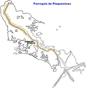 Location of Grande Ecaille within Plaquemines Parish, Louisiana
