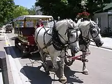 Mackinac Island does not permit motor vehicles (except for emergency vehicles and, in winter, snowmobiles), and transport to and from the dock to the hotel is via horse-drawn carriage. The only other motor vehicles allowed in recent history were cars brought over for the filming of Somewhere in Time. During the winter months, when ice prevents ferry transport from the mainland, the hotel is closed. The island also has a small airport (no fuel or services) for private aircraft. Horse-drawn taxis take guests from the airport to the hotel or any other island destination.[19]