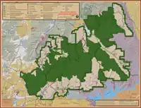 On December 4, 2017, President Donald Trump ordered that the monument's size be reduced by nearly 47% to 1,003,863 acres (4,062 km2),[5] with the remainder divided into three areas, two of which border one another along the Paria River.[23][24] Bears Ears National Monument was significantly reduced in size at the same time. Conservation, angling, hunting, and outdoor recreation groups filed suit to block any reduction in the national monument, arguing that the president has no legal authority to materially shrink a national monument.[25] The cases were still pending at the 2020 election.[26]