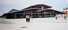 Parc de la Villette, located in northeastern Paris, now includes a science museum and an exhibition hall.[5] A project titled "Parc de la Villette" was launched in 1979 to create a national park with a music centre and a museum devoted to science and technology. The project is spread over an area of 55 acres (22 ha). In an international competition held in 1982 in which 460 teams from 41 countries participated, Bernard Tschumi, a French architect of Swiss origin, was chosen as the architect to build the complex, in March 1983.[17] The objective was to make Parc de la Villette an artistic, cultural and popular centre in Paris. Tschumi designed the park from 1984 to 1987 on the site of the former Parisian abattoirs,[18] which had been built in 1867 by Napoleon III and demolished and relocated in 1974. The park project was successfully completed in stages with the gardens of the Park and the Maison de la Villette getting established in October 1987, the Music and Dance centres in 1990, Music and Concert Halls inaugurated in January 1995 and Music Museum inaugurated in January 2000.[17] It now hosts the annual Open-Air Film Festival.