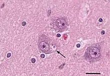 - ↑ Adams, J. Hume; Corsellis, J.A.N.; Duchen, L.W. (1984). Greenfield's Neuropathology (4th ed.). New York: John Wiley and Sons. pp. 24, 966–967. ISBN 0-471-82307-4.