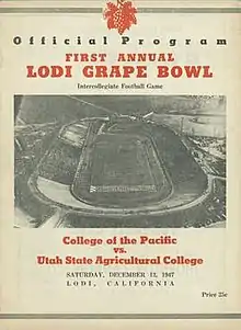 8. 1 2 3 Lea, Ralph; Kennedy, Christi (September 18, 2010). "Grape Bowl stadium featured major college showdown in 1950". Lodi News-Sentinel. Retrieved January 7, 2017 via lodinews.com.