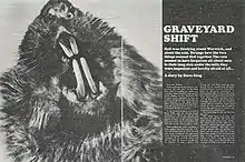 "Graveyard Shift" is a short story by Stephen King, first published in the October 1970 issue of Cavalier magazine and collected in King's 1978 collection Night Shift. It was adapted into a 1990 film of the same name.[1]