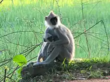 Tufted gray langur with young