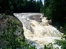 Great Conglomerate Falls is a 30 feet (9.1 m) waterfall on the Black River in Michigan.[2] It is split into two drops in the summertime when water is lower. The falls takes its name from the large conglomerate outcropping in the middle of the river that forms its segmented appearance.