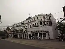 During its heyday, the hotel was known variously as the "Jewel of the East"[1] and the "Savoy of the East"[4] and was prosaically described by Kipling in his short story City of Dreadful Night.[1] It was said of the hotel in 1883 that "a man could walk in at one end, buy a complete outfit, a wedding present, or seeds for the garden, have an excellent meal, a burra peg (double) and if the barmaid was agreeable, walk out at the other end engaged to be married".[6] The hotel has housed many famous personalities including Nikita Khrushchev and Nikolai Bulganin,[4] Elizabeth II,[1] Mark Twain,[4] Dave Brubeck[7] and possibly Ho Chi Minh.[1] The management of the hotel was taken over by the state government in the 1970s and continued operations for over 30 years.[1] The state sold it to the private group The LaLiT Hotels, Palaces and Resorts in 2005.[4] Until its closure for restoration in 2005, the hotel was the longest continuously operating hotel in Asia.[8]
