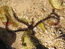 Great Palm Island's rich volcanic soil supports tropical flora such as mangroves, eucalypt forest, rainforests, hoop pine, mango, banana, pawpaw (papaya) and wild plum trees.[5][29] The surrounding bays have diverse marine fauna, including coral trout, crayfish and coral reefs.[5]
