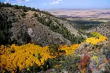 Subalpine forests and meadows capture heavy snow in winter and soaking rains in summer. The highest diversity of Rocky Mountain species of plants and animals is found in this ecosystem. Subalpine forest extends from 9,500 ft (2,900 m) to tree line at 11,700 ft (3,600 m). Montane forests and woodlands are found along the drier foothills at approximately 8,000 ft (2,400 m) to 9,500 ft (2,900 m). Pinyon-juniper and ponderosa pine woodlands are found on open, drier slopes, while cottonwood and aspen trees are in drainages. Cougars hunt mule deer here at night. Owls, dusky grouse, turkeys, and bullsnakes all find habitat in these drier, open woodlands.[10]