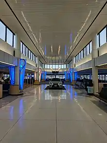 The security checkpoint was enlarged, now including two dedicated TSA pre-check lanes in addition to four general lanes. A consolidated exit passageway, leading from the secure Food Court to non-secure Baggage Claim, eliminated two previous exits at either end of the concourse. The Food Court was renovated and revamped with new restaurants and additional seating. Bathrooms, interior lighting in addition to accessibility services and way-finding were overhauled throughout the terminal.