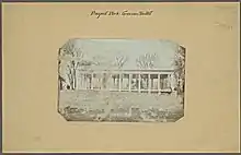 The Grecian Shelter, designated a Croquet Shelter on the original plans of Prospect Park, is also referred to as the Prospect Park Peristyle or Peristyle.[2] The building, a peristyle with Corinthian columns, is situated near the southern edge of Prospect Park in Brooklyn, New York. Constructed by McKim, Mead and White in 1905, this peristyle was built on the site of the 1860s-era Promenade Drive Shelter along the southwest shore of the Prospect Park Lake.[3] The Prospect Park Peristyle is designed in the Renaissance architectural style. It consists of a raised platform located two steps above ground level; the platform is covered by a rectangular colonnade with 28 Corinthian marble columns, each with square piers. An entablature of terracotta runs atop the structure.[3][4] The building was constructed as a temporary refuge from rain and sun.[2]