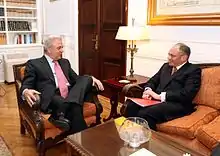 Greek–British relations are foreign relations between Greece and the United Kingdom. Greece and the United Kingdom maintain excellent and cordial relations[1] and consider each other an ally [2] with the Greek Prime Minister, Kyriakos Mitsotakis, paying an official visit to London in 2021.[3] Greece and the United Kingdom are both members of the United Nations, NATO and the Council of Europe. The United Kingdom is also viewed very favorably in Greece. According to a global opinion poll, 77% of Greeks view the United Kingdom favourably, while only 10% don't.[4] The British have a very positive opinion of Greece as well. 66% of the British view Greece positively, while only 3% view it negatively, making Greece one of the most liked countries in the UK.[5]