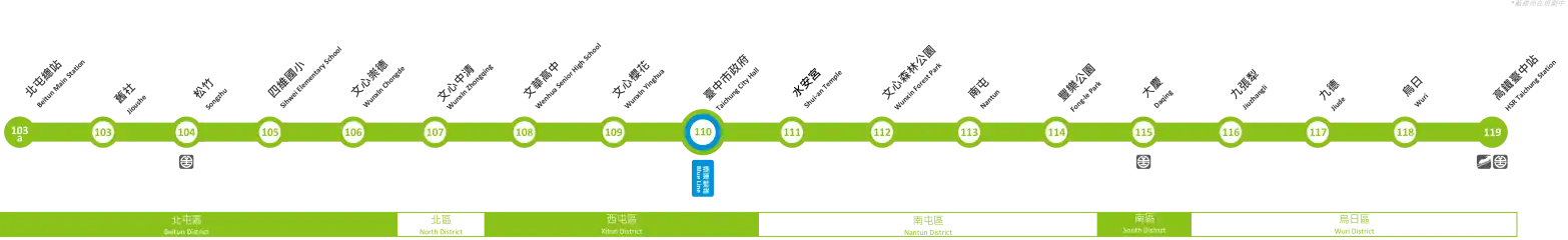 | 110 | Taichung City Hall | 市政府 | B Blue Line (planned) | ||