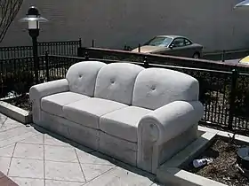 Greenwood Park Sofa, also known as Limestone Sofa,[1] is a 2004 limestone sculpture of a couch by Robert Huff, installed in Columbus, Ohio.[2] Formerly installed in its namesake pocket park on High Street for a decade,[2] the artwork "became the locus for reports of public urination, intimidation and petty theft on the sidewalk and in the parking lot behind it", according to Tracy Zollinger Turner of the Short North Gazette. The work was later restored by the artist and installed outside the Cultural Arts Center in Downtown Columbus.[3]