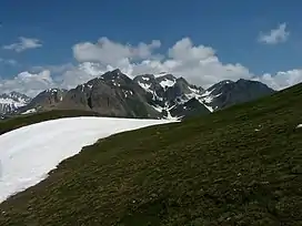 The Grieshorn (also known as Corno Gries) is a mountain of the Lepontine Alps, located on the Swiss-Italian border. With an altitude of 2,969 metres above sea level, it is the culminating point of the group lying between the Gries Pass, the San Giacomo Pass and the Nufenen Pass.