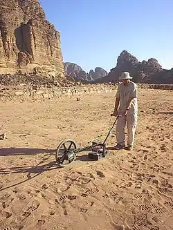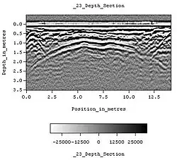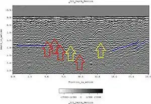 Ground penetrating radar survey is one method used in archaeological geophysics. GPR can be used to detect and map subsurface archaeological artifacts, features, and patterning.[14]