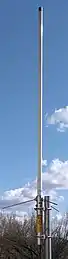 A whip antenna is an antenna consisting of a straight flexible wire or rod. The bottom end of the whip is connected to the radio receiver or transmitter. A whip antenna is a form of monopole antenna. The antenna is designed to be flexible so that it does not break easily, and the name is derived from the whip-like motion that it exhibits when disturbed. Whip antennas for portable radios are often made of a series of interlocking telescoping metal tubes, so they can be retracted when not in use. Longer whips, made for mounting on vehicles and structures, are made of a flexible fiberglass rod around a wire core and can be up to 11 m (35 feet) long.
