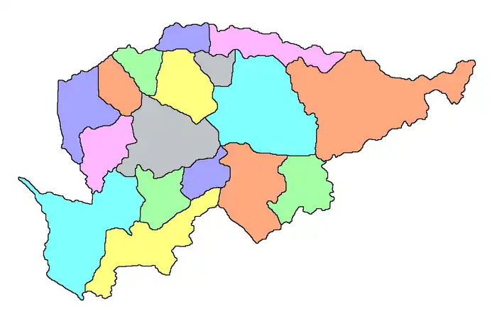 The department is divided in the following 18 districts: