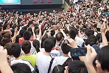 On July 25, 2010, a crowd of about 10,000 gathered at 5pm in the surroundings of Guangzhou Metro's Jiangnanxi Station in a protest to criticize the CPPCC Guangzhou Committee's proposal and support Cantonese.[35][36][37][38][39][40] Organizers of the activity had informed local police in advance, but were forced by the authorities to cancel it.[40][41] People, however, gathered regardless.